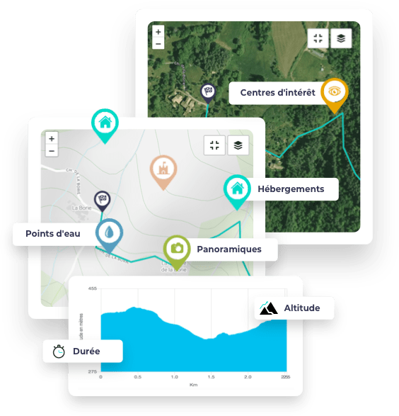 L'application vous guide en temps réel, vous indique les points d'intérêt et les hébergements autour de vous. Idéale pour partager votre position.